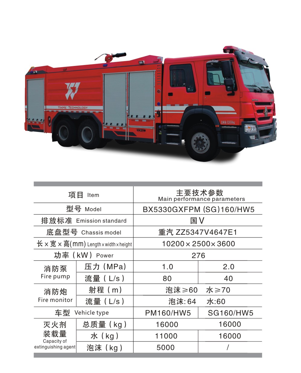 BX5330GXFPM(SG)160/HW5 水罐泡沫消防車