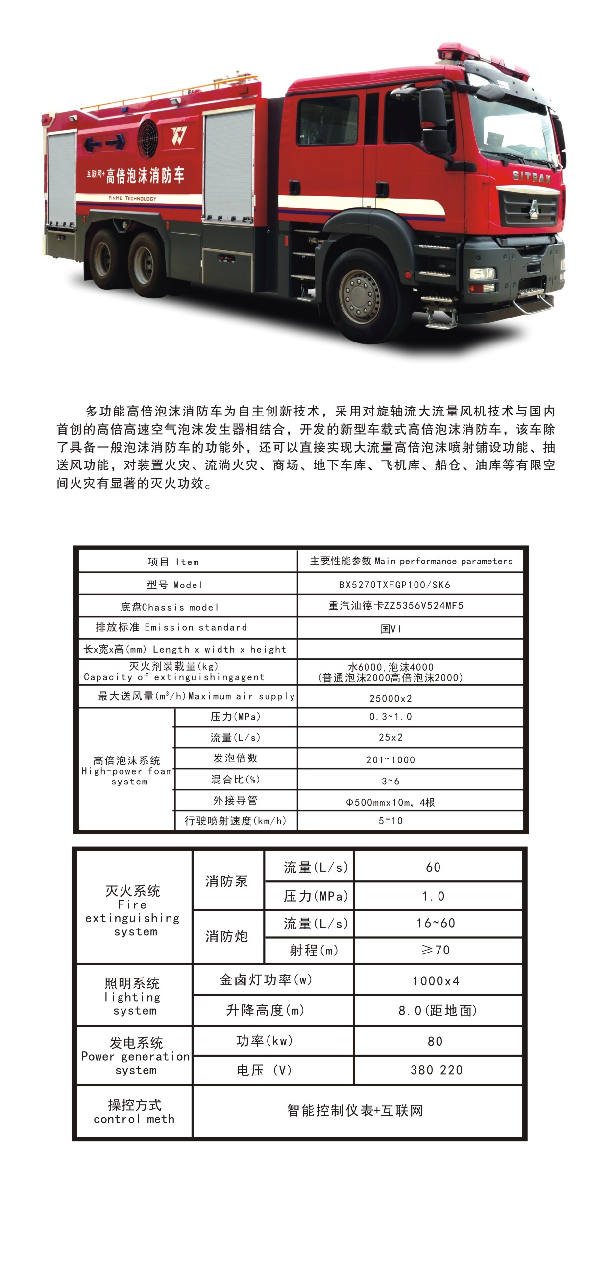 BX5270TXFGP100/SK6多功能高倍泡沫消防車